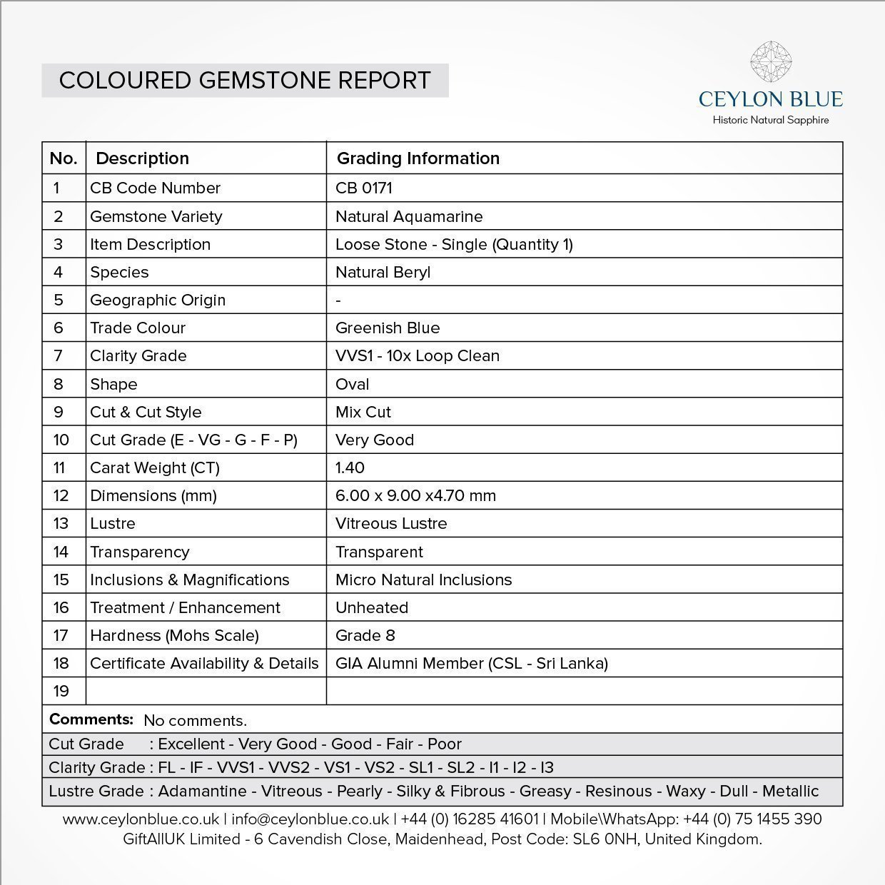 Be the first to review “Aquamarine 1.26ct Greenish Blue Cushion Shape – CB 0176”
