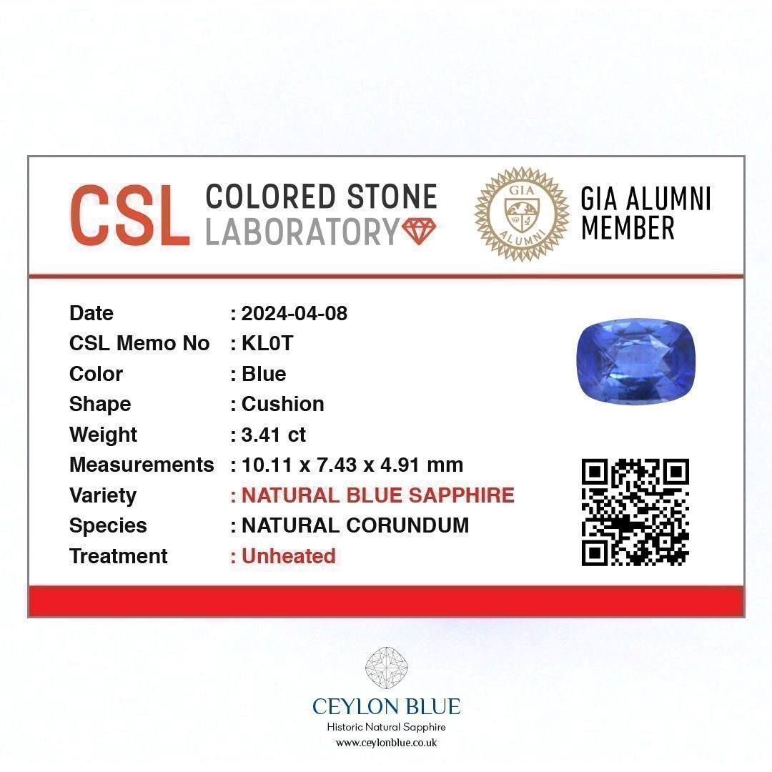 Be the first to review “Blue Sapphire Unheated Cornflower Blue Cushion Shape 3.41ct CB 0256”