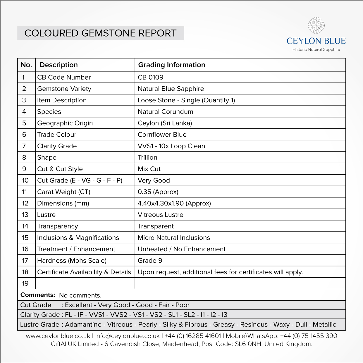 Cornflower Blue Sapphire 0.35ct Trillion – CB 0109