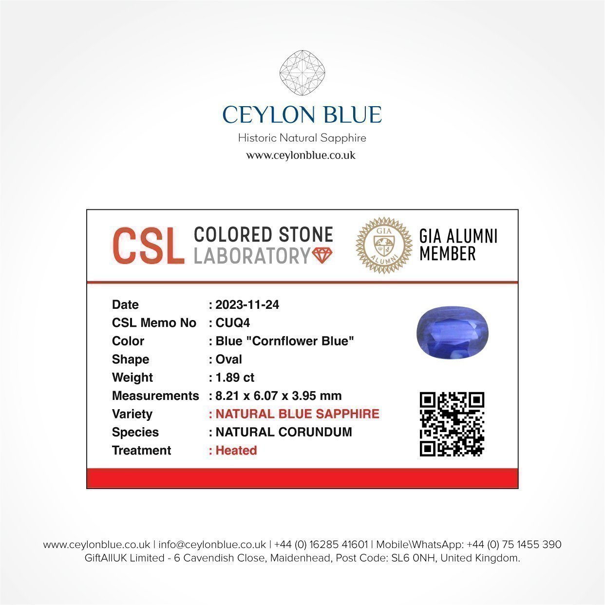 Cornflower Blue Sapphire 1.89ct Oval Shape – CB 0178