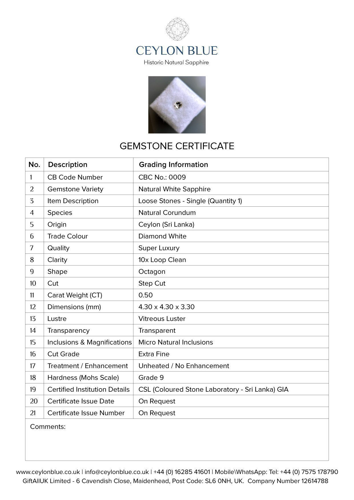 Diamond White Sapphire Octagon Shape 0.50Ct – CB 0009