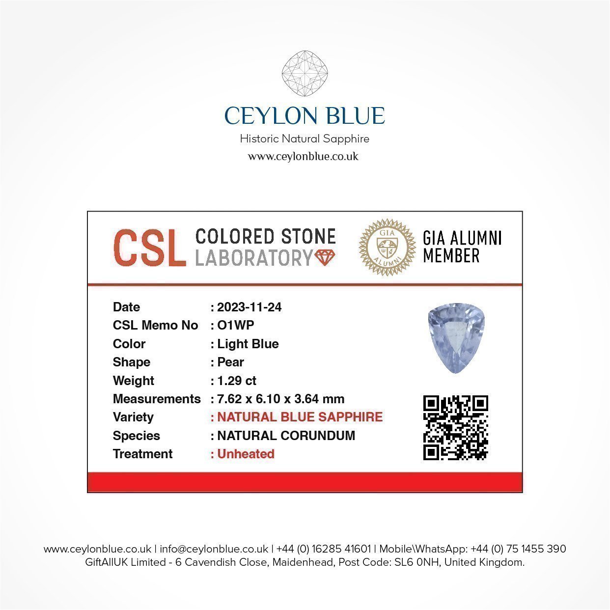 Light Blue Sapphire 1.29ct Pear Shape – CB 0164
