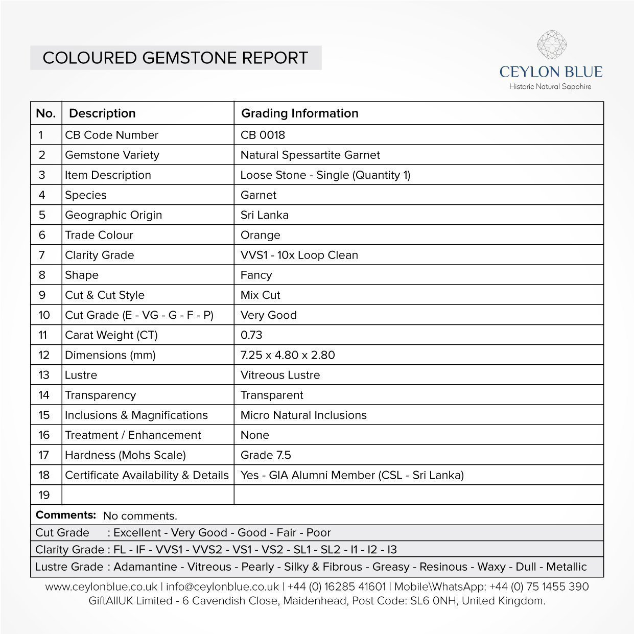 Orange Spersastite Garnet 0.73ct Fancy Shape – CB 0018