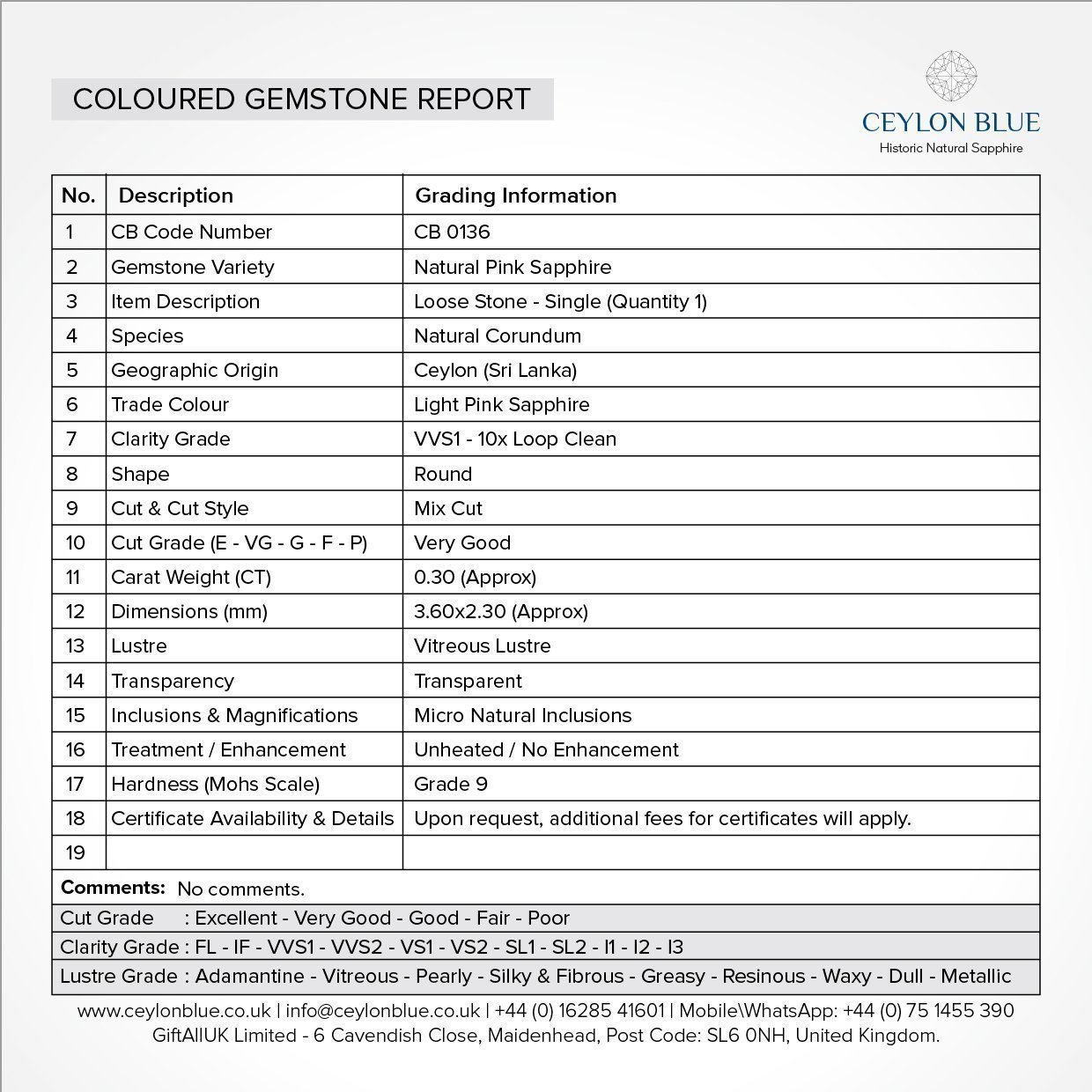 Pink Sapphire 0.30ct Pear Shape – CB 0136