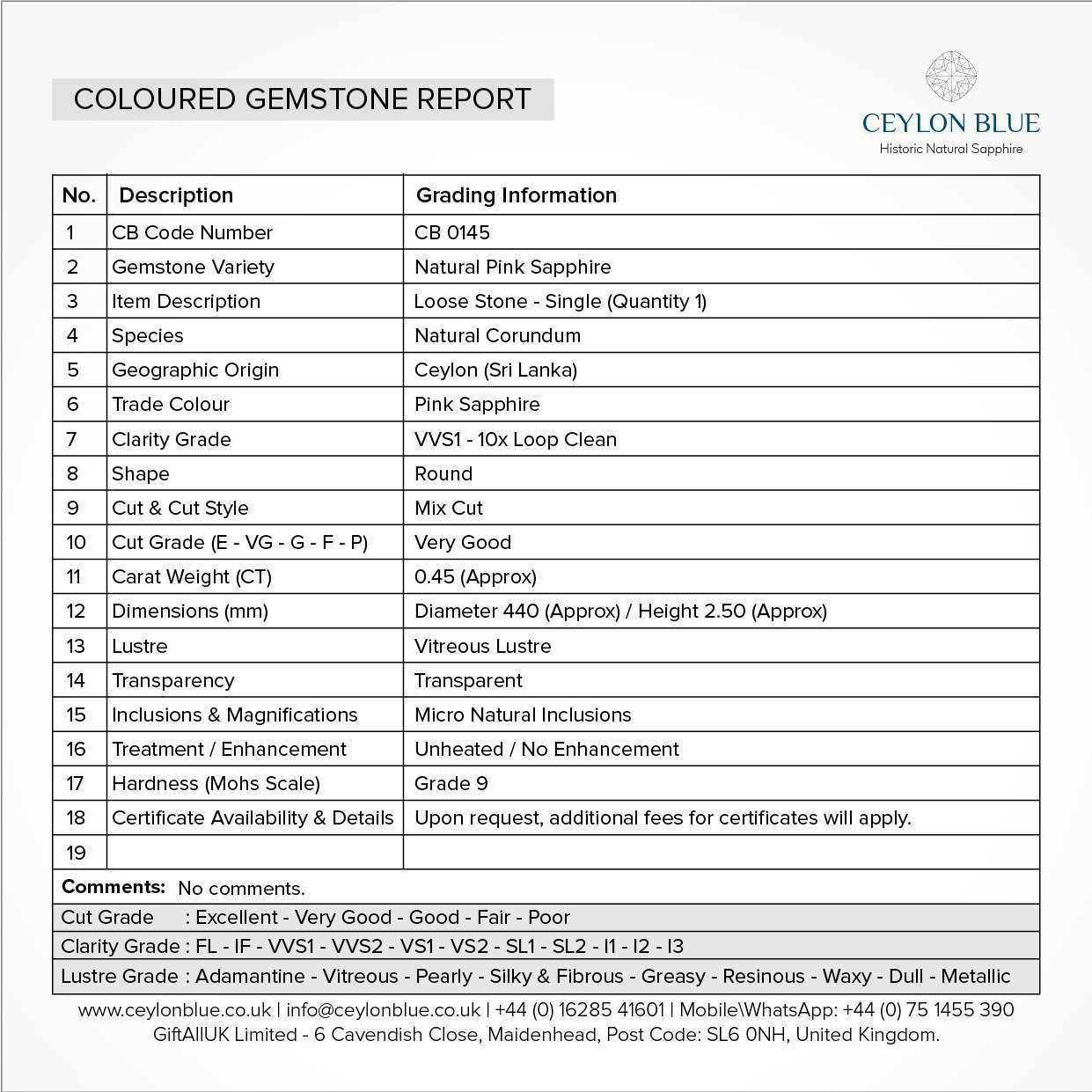 Pink Sapphire 0.45ct Round Shape – CB 0145