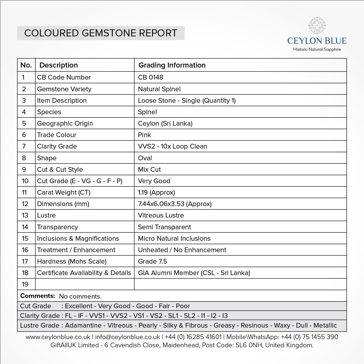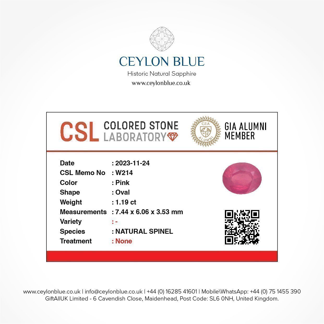 Be the first to review “Pink Spinel 1.16ct Oval Shape – CB 0156”