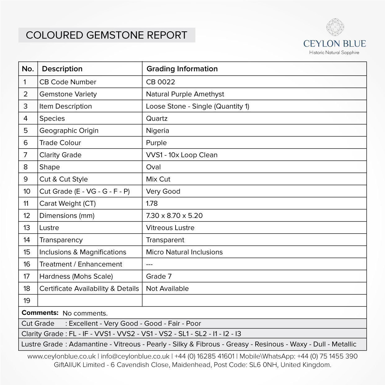 Purple Amethyst 1.78ct Oval Shape – CB 0022