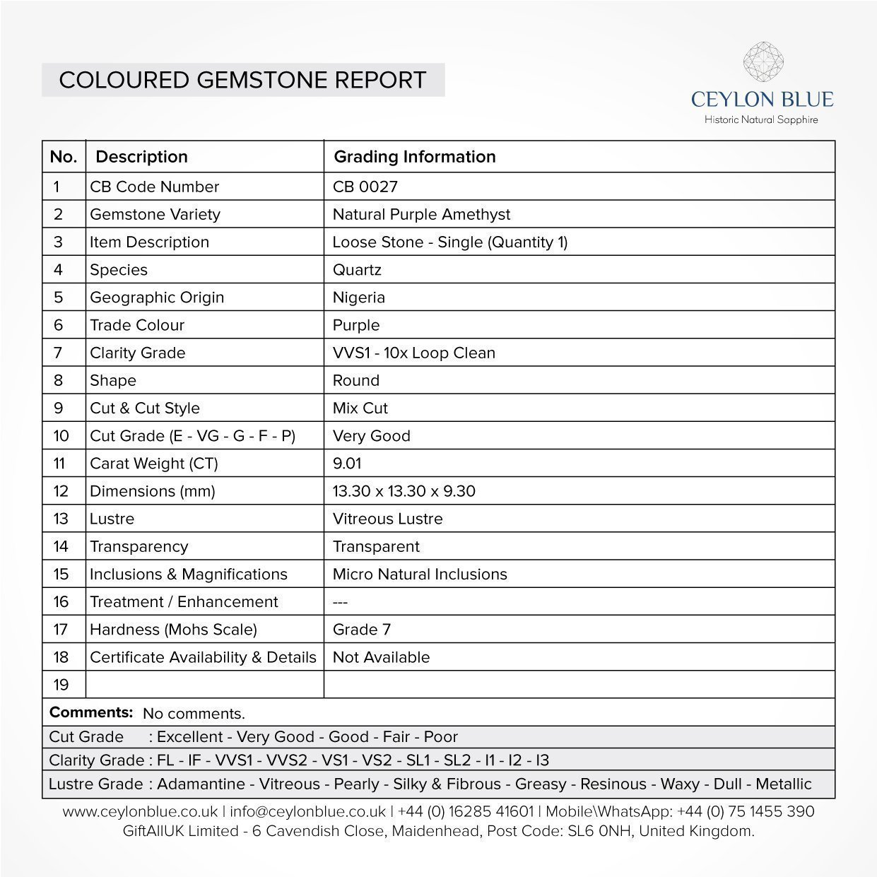 Purple Amethyst 9.01ct – Round Shape – CB 0027