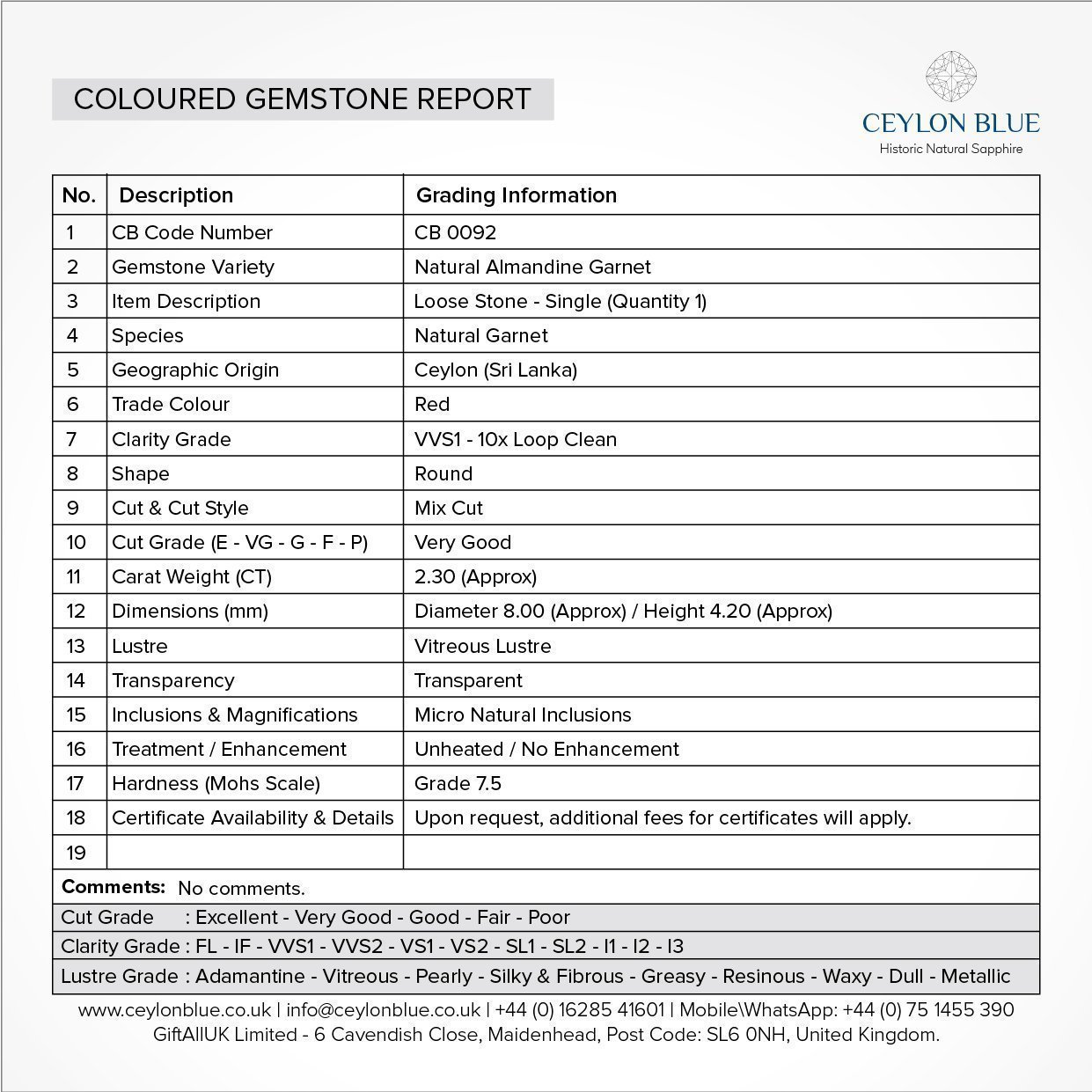 Red Almandine Garnet 2.30ct Round Shape – CB 0092