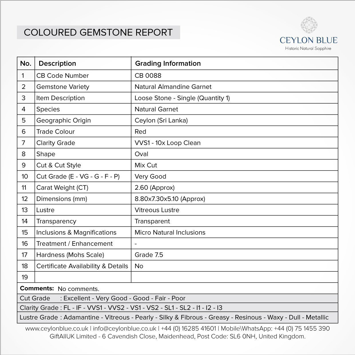 Red Almandine Garnet 2.60ct Oval Shape – CB 0088