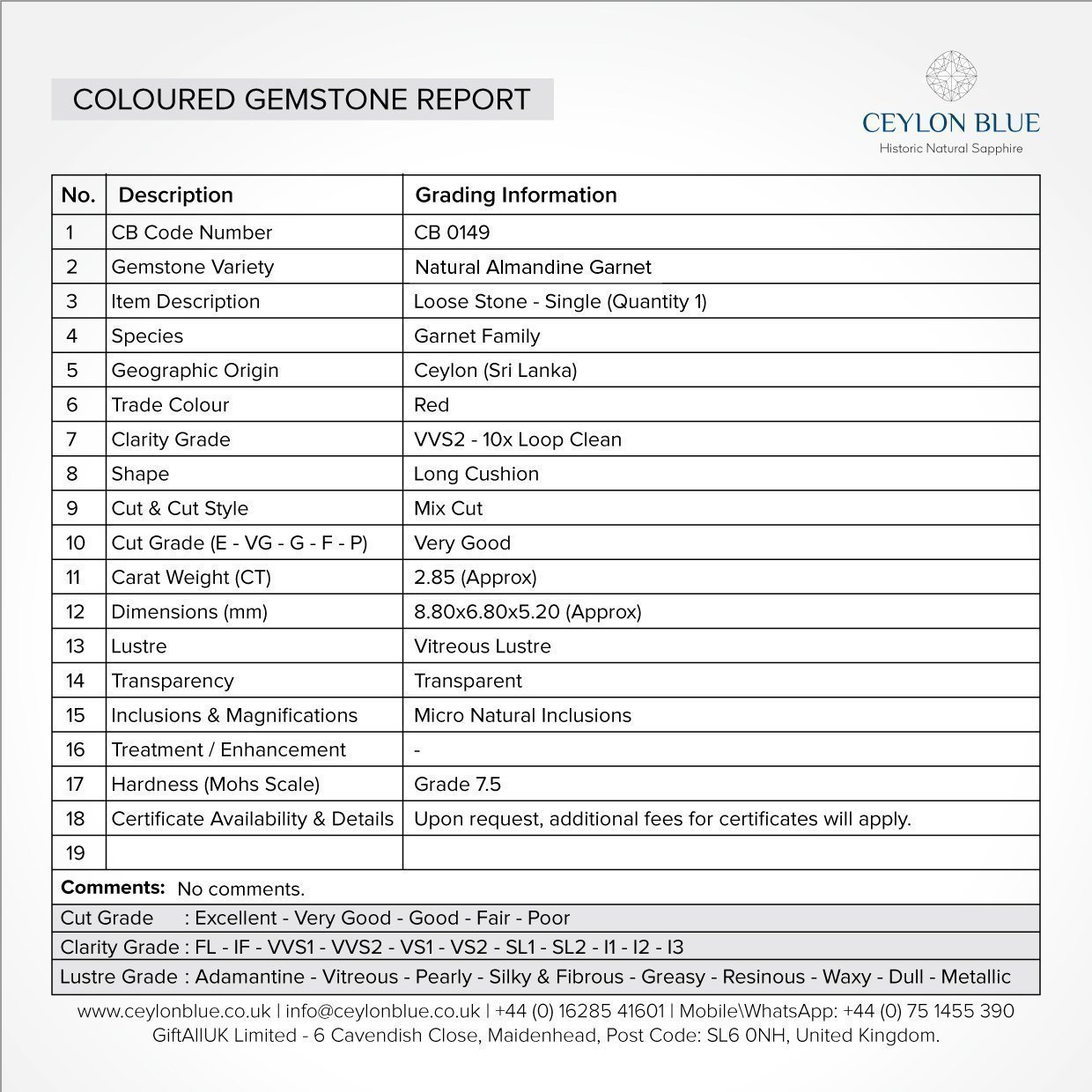 Red Almandine Garnet 2.85ct Cushion – CB 0149