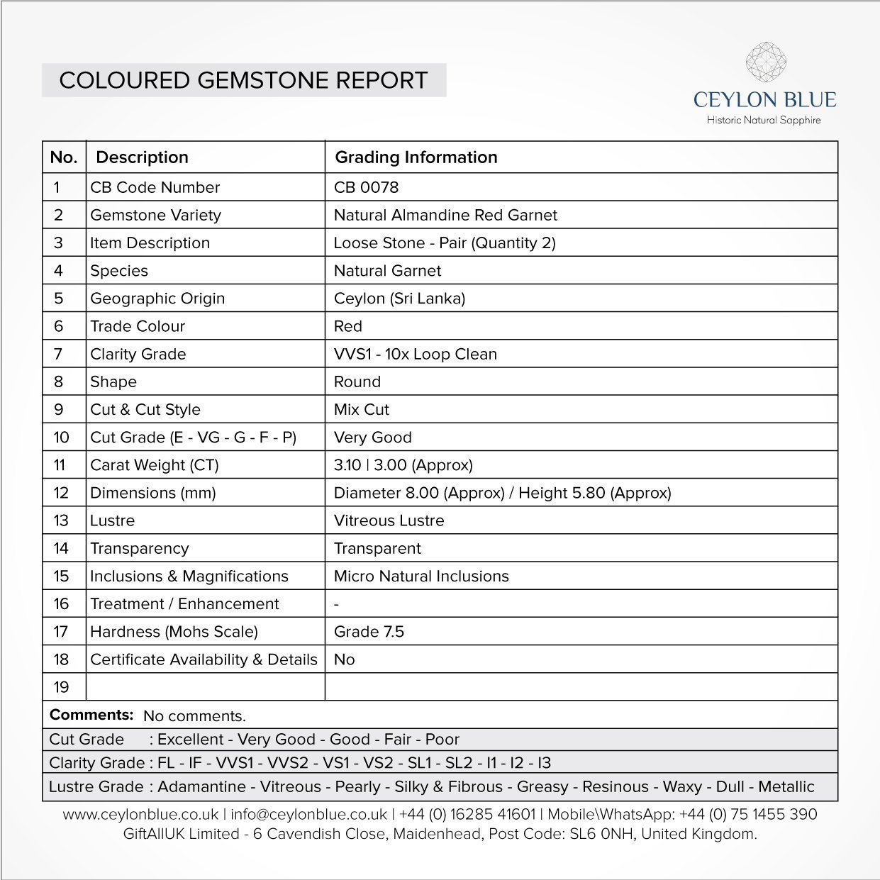 Red Almandine Garnet Round Shape Pair – CB 0078