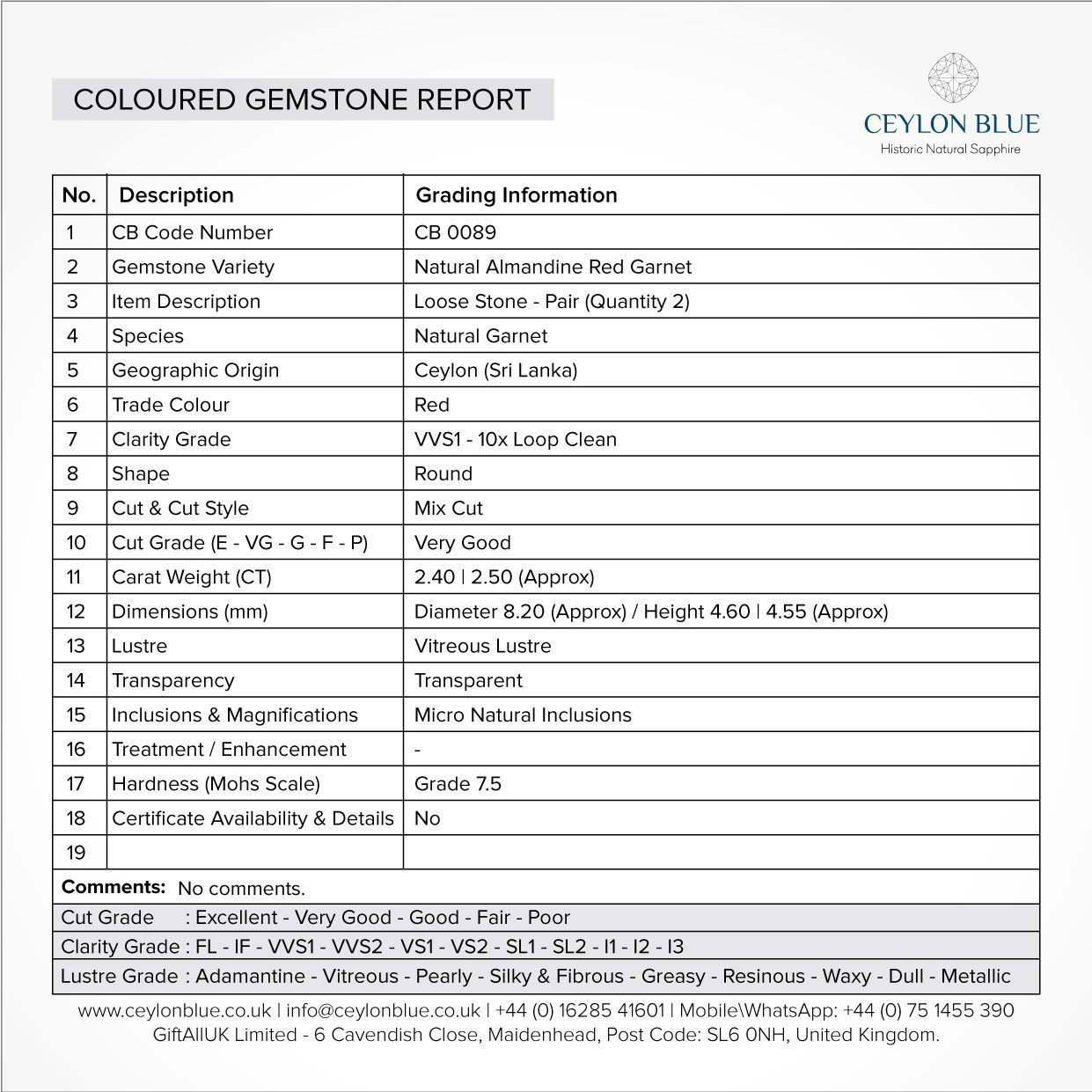| Gem Type | Garnet – Almandine |