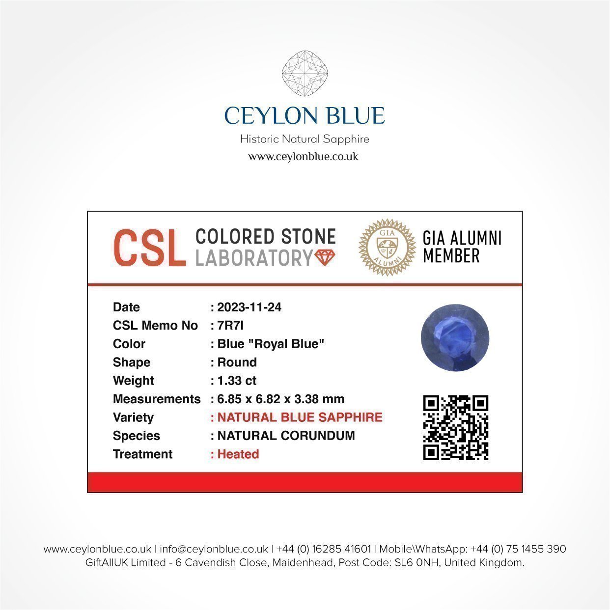 Royal Blue Sapphire 1.33ct Round Shape – CB 0170