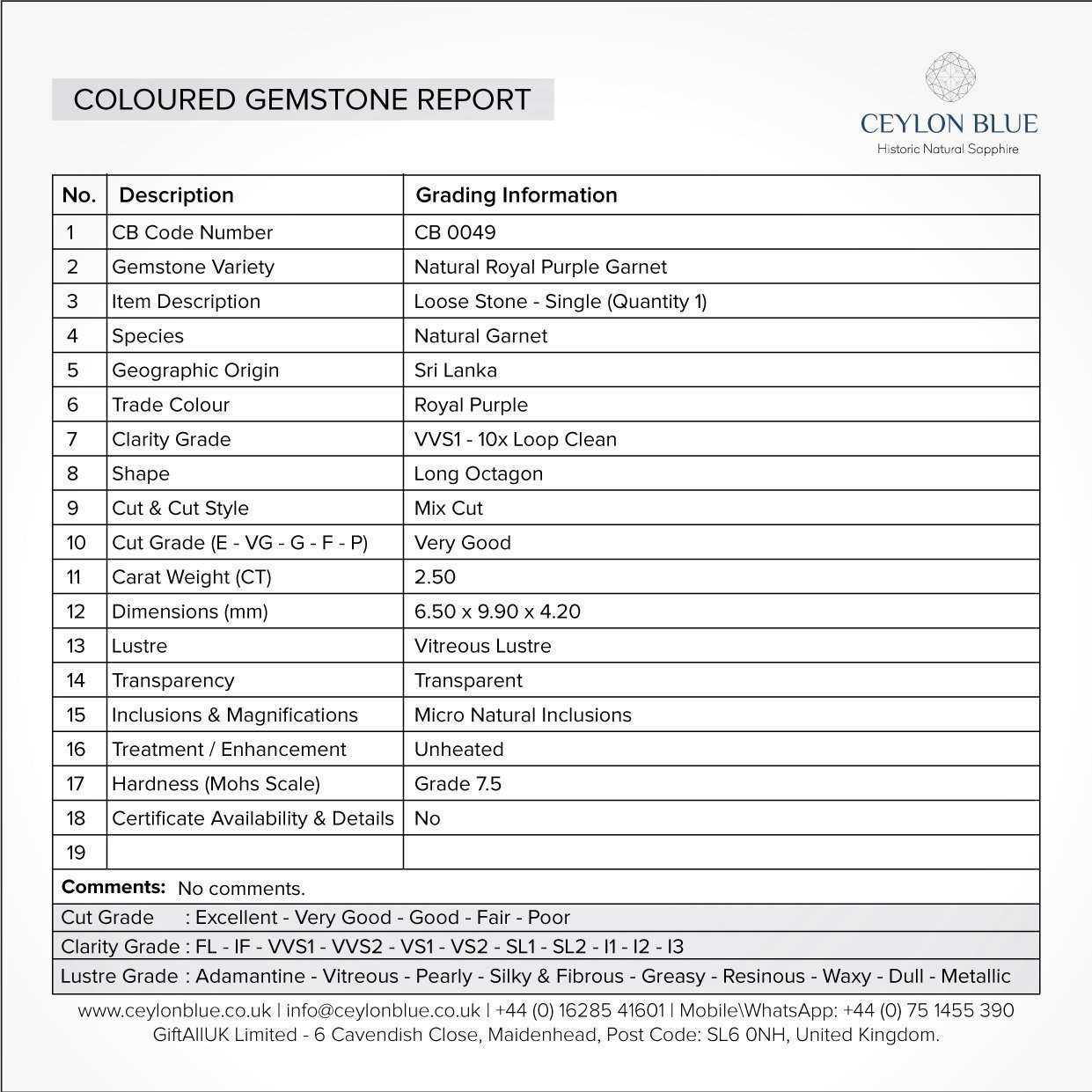 Royal Purple Garnet 2.50ct Long Octagon – CB 0049