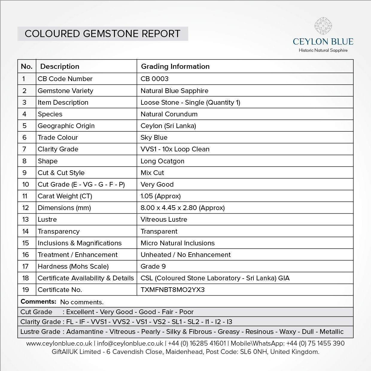 Sky Blue Sapphire 1.05ct Long Octagon Shape – CB 0003
