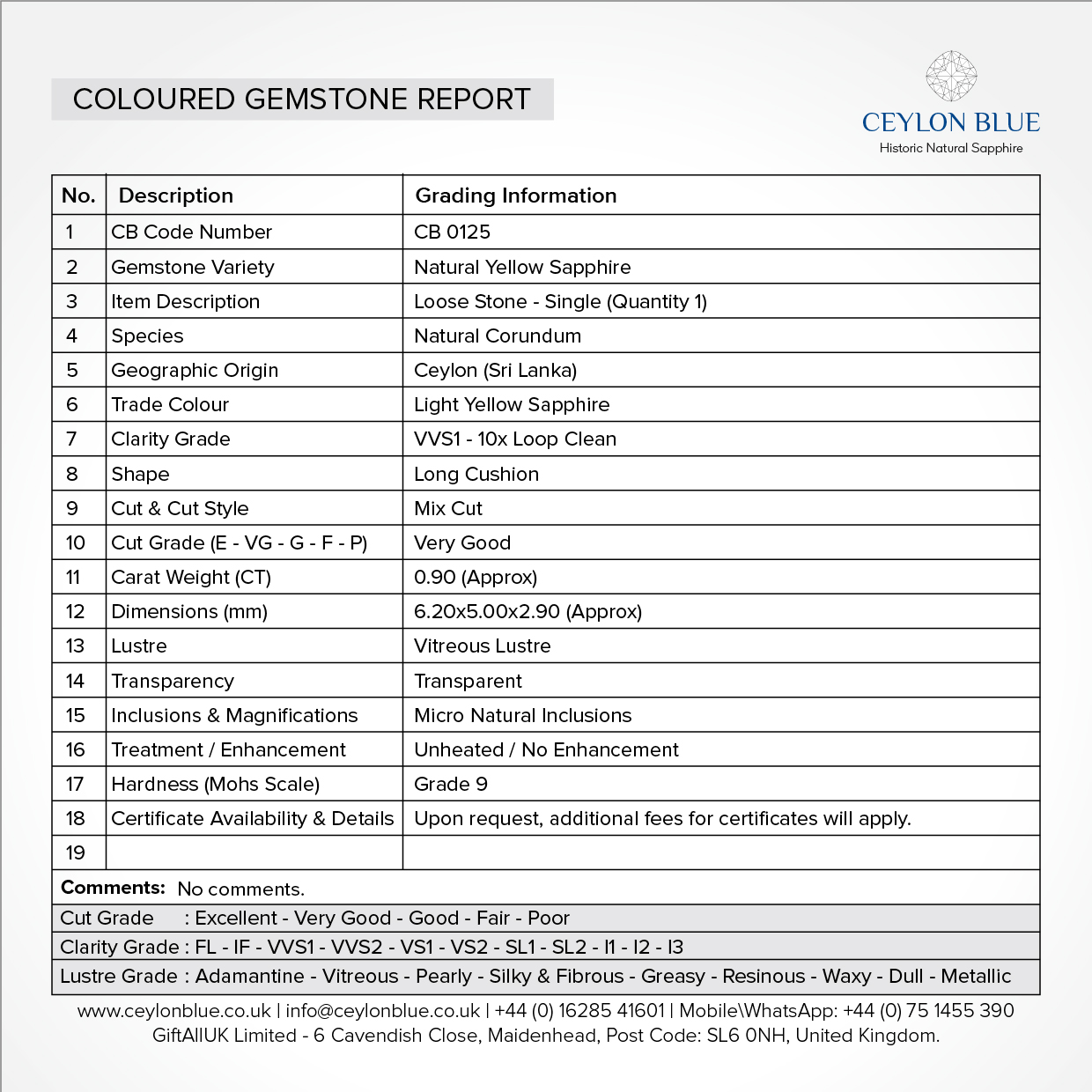 Yellow Sapphire 0.90ct Long Cushion Shape – CB 0125
