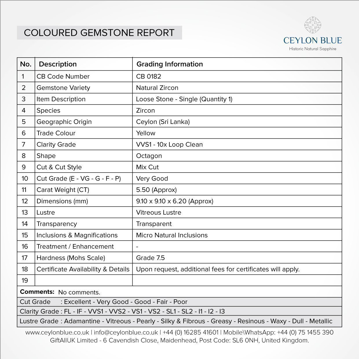 Yellow Zircon 5.50ct Octagon Shape – CB 0182